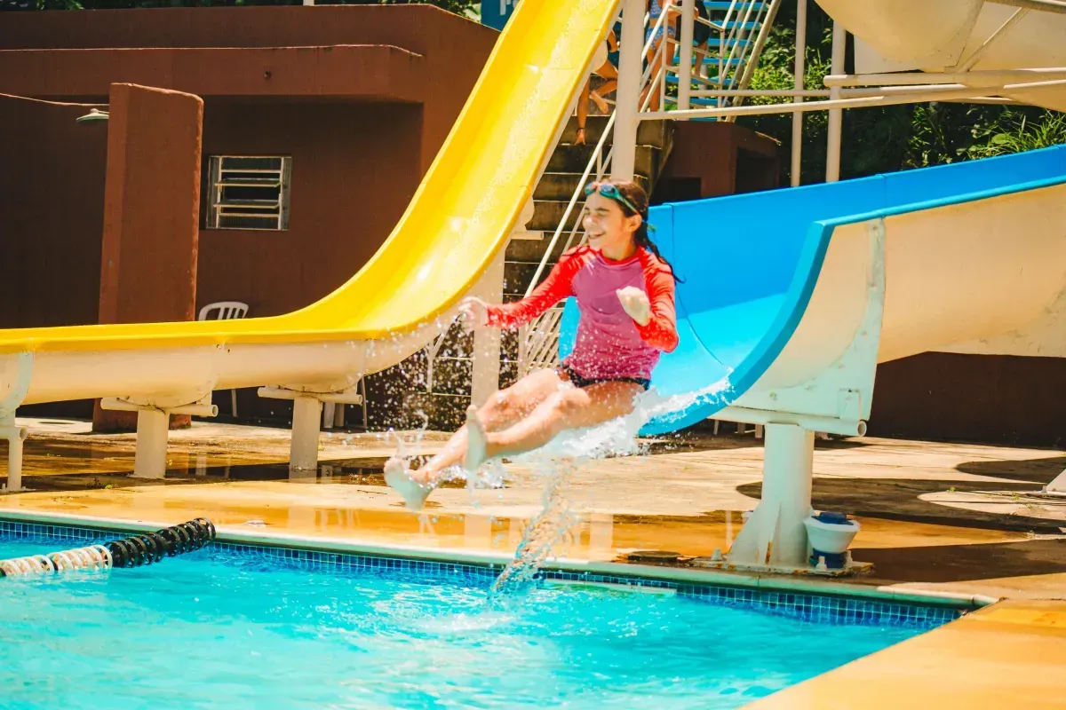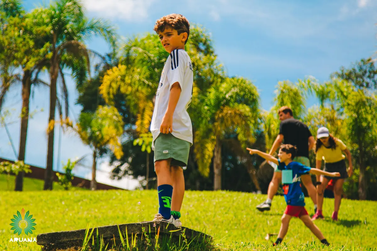 Dia recreativo com piscina, trilhas e brincadeiras lúdicas.