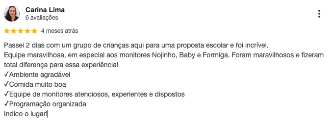 Há enfermeira presente durante toda a semana e carro de apoio para emergências, com comunicação imediata aos responsáveis.