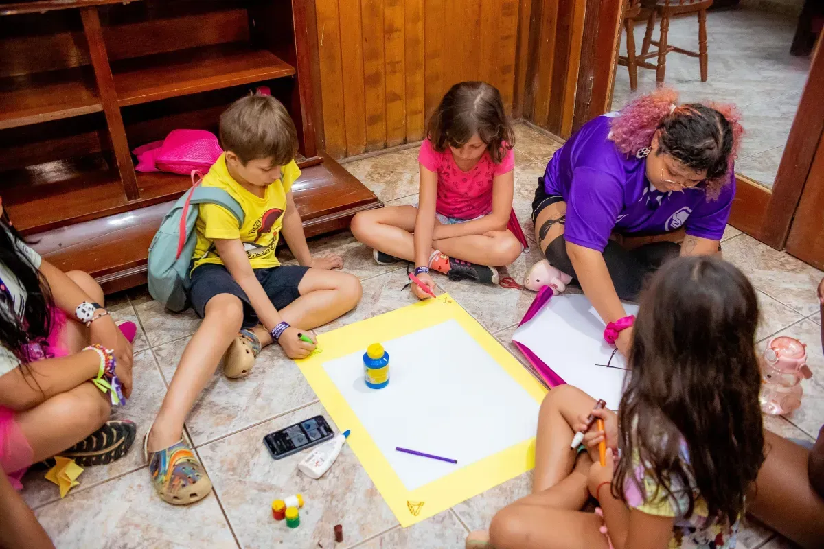 As crianças são acompanhadas o tempo todo por monitores treinados, com coordenação pedagógica e psicopedagógica.